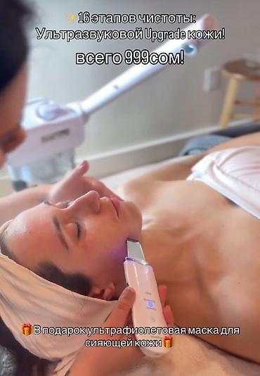 - Ультразвуковой Upgrade кожи — комплексная чистка в 16 этапов. Цена: 999 сом. Подарок: ультрафиолетовая маска для сияющей кожи.
