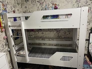 Детская двухъярусная кровать белого цвета.