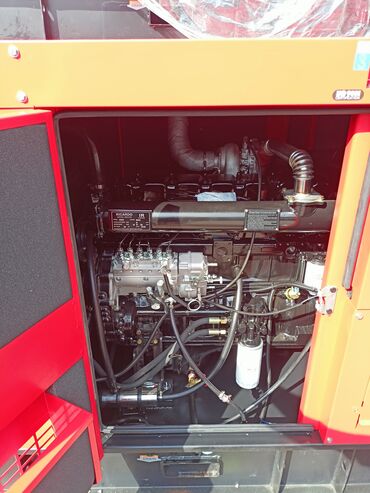 - Шумозащитный корпус ярко‑красного цвета с вентиляционными решетками и смотровым окном для панели управления.