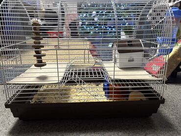 - Просторная металлическая клетка с пластиковым поддоном.