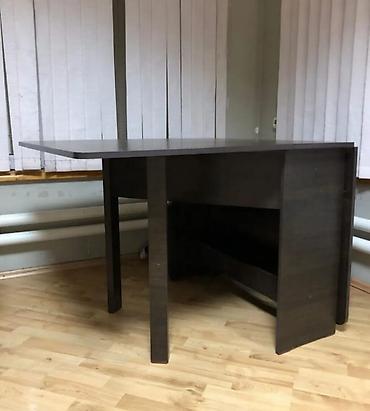 - Компактный прямоугольный стол из ЛДСП темного цвета.