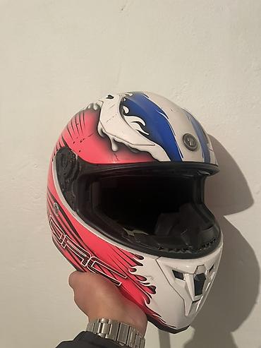 Мотошлем интеграл с ярким красно‑черным графическим дизайном. - Тип: полноразмерный (integral) с прозрачным визором - Материал корпуса: ударопрочный пластик - Визор: прозрачный, широкое поле обзор...