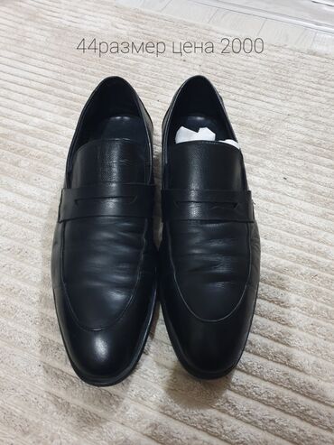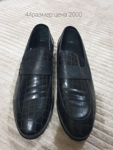- Размер 44 – классические лоферы с перемычкой, гладкая кожа с тиснением «под плетение». Цена 2000.