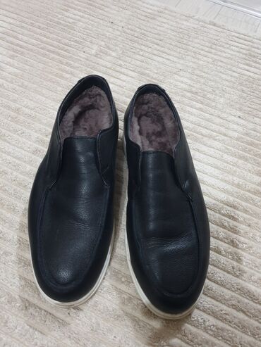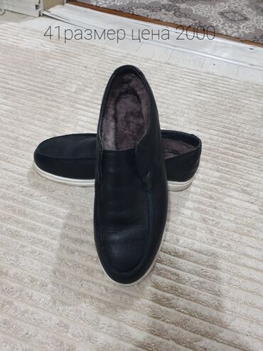 - Размер 41 – утепленные кожаные слипоны на белой подошве, внутри густой мех/ворс. Цена 2000.