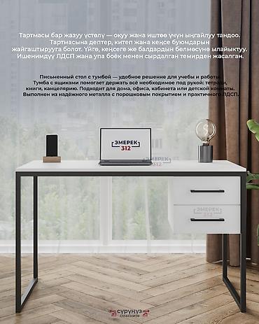 ✍ Жазуу үстөлү жана капталдагы стеллаж бириктирилген — бир топтомдо баары бар.