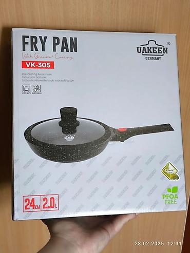 Сковорода Uakeen VK-305 с крышкой - Диаметр: 24 см - Объем: 2,0 л -