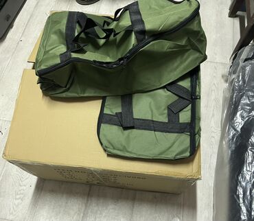 Сумки-чехлы для прикормочных корабликов цвета хаки, предназначенные для хранения и транспортировки различных предметов. Каждая сумка оснащена прочными черными стропами, расположенными по всей поверхности для дополнительной фиксации содержимого и удобства переноски. Застежка-молния обеспечивает надежное закрытие. Идеально подходят для организации пространства дома, в гараже или при выездах на природу.