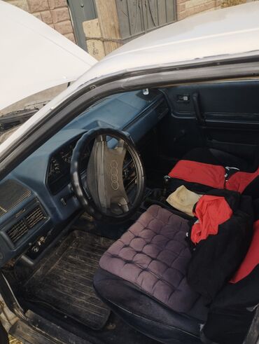 Салон тканевый, темный, просторный задний диван, передние сиденья с накидками/подушками. Рулевое колесо с эмблемой Audi, механическая коробка передач, ручные стеклоподъемники, печка, дефлекторы обдува, центральная консоль с нишами. Резиновые коврики спереди и сзади.