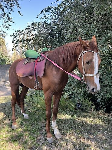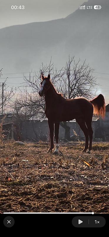 Срочно срочно жашы 3 жаш эркек малга улака универсал басыгы бар женил оозу жумшак Кеми бар ат ысык атада Лошадь под верховую езду - Масть: гнедая, с белой отметиной на морде и белой «чулочной» отм...