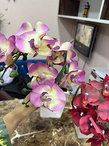 - Компактные декоративные композиции из реалистичных искусственных орхидей.