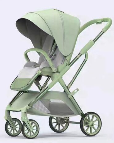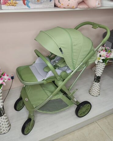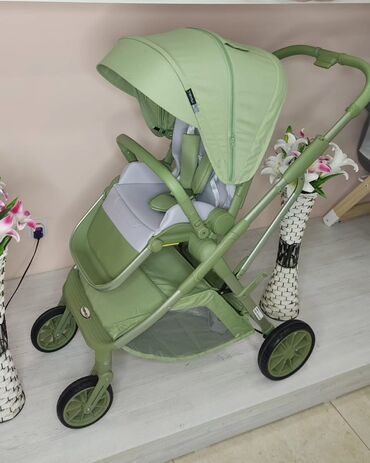 Универсальная детская коляска 2-в-1 (люлька + прогулочный блок), цвет хаки/оливковый. Основные особенности: - Шасси из легкого металла с лаконичным дизайном, центральный замок фиксации блока. - Бо...