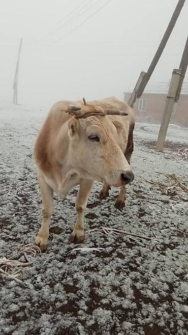 Уй 3 тууган боос 8 ай туугандан кийин 20-22 л сут бою 133 Корова чёрно-пестрой масти с белой лобной отметиной и рожками. Животное содержится в стойле, на ушах — бирки идентификации. Хорошо выражён...