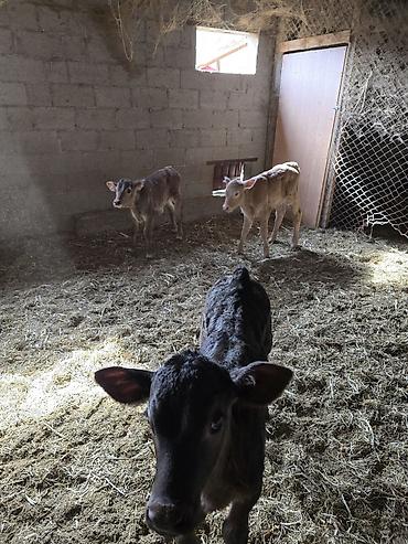 Телята мясо-молочного направления. Описание: - Молодые телята на выпое, крепкая конституция, ровные ноги, длинное туловище. - Окрас: светло-рыжий и темно-бурый. - Содержатся в отдельном стойле, на...