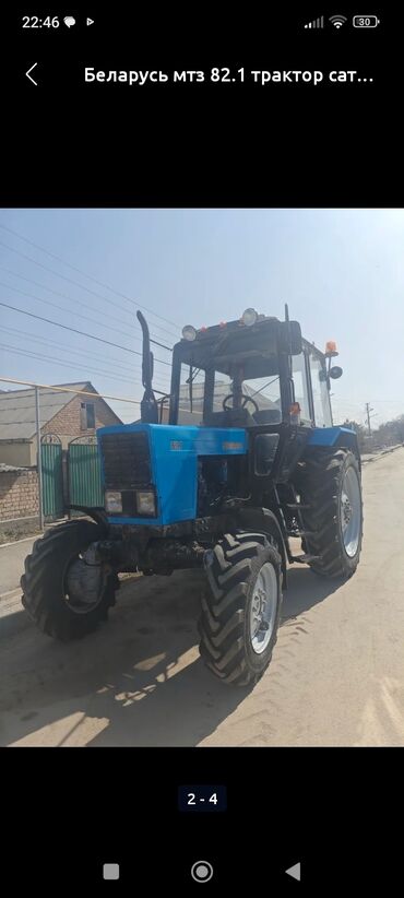 Трактор Беларус МТЗ 82.1 синего цвета с белыми дисками. Эта модель широко используется для различных сельскохозяйственных и коммунальных работ. Оснащенный мощным двигателем, трактор способен выполнять широкий спектр задач, включая вспашку, культивацию, посев и транспортировку грузов. Кабина обеспечивает оператору хороший обзор и базовый комфорт. Большие шины с агрессивным протектором обеспечивают отличное сцепление с дорогой и проходимость на различных типах поверхности.