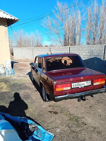 Кыргыз номерде ВАЗ 2107, бензиновый седан классической компоновки. Цвет кузова – фиолетовый. Кузов 4‑дверный, задний привод. Фирменная решётка радиатора, прямоугольная оптика, хромированные молдинг...
