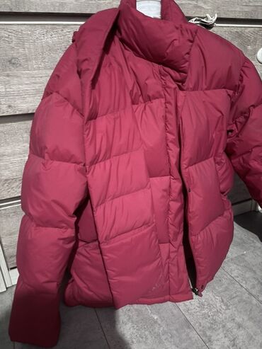 - Теплый объёмный пуховик с горизонтальной стёжкой.