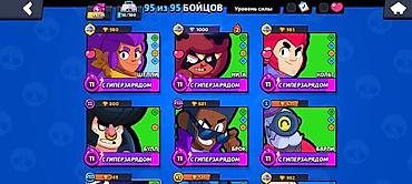 - Многие бойцы прокачаны до 11 уровня силы и с гиперзарядом (на скринах: Шелли, Нита, Кольт, Булл, Брок, Барли и др.)