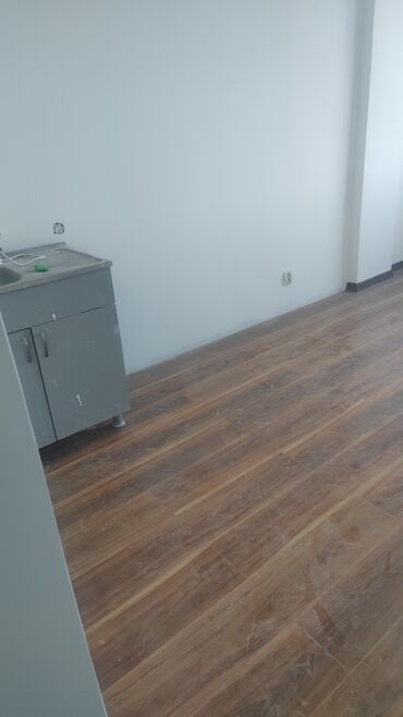 В комплекте на фото: уложенный ламинат в комнате и кухонной зоне; показан пример интеграции с существующими плинтусами и порожками.