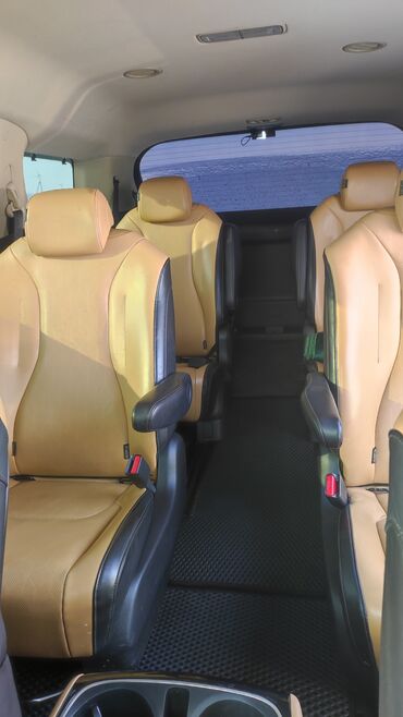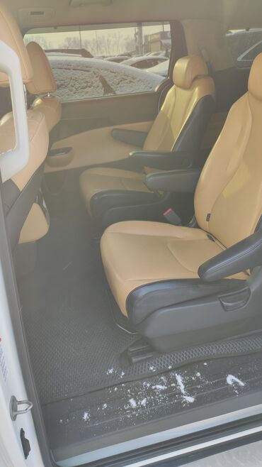 - Салон: 3 ряда сидений, компоновка с раздельными креслами второго ряда (капитанские кресла) с подлокотниками; комбинированная обивка в тёплом оттенке, развитая боковая поддержка. Просторный проход к третьему ряду.