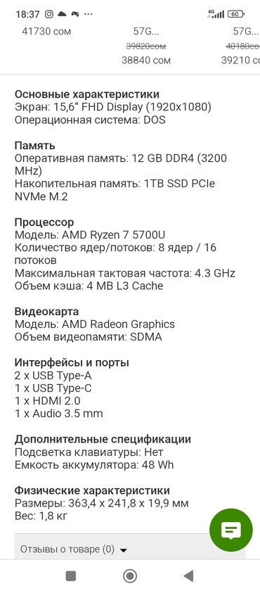 Ноутбук-Acer 🔳-модель-Acer Aspire 15 🔳-процессор-Ryzen 7-8840HS 🔳-оперативная память-16Gb 🔳-накопитель-SSD-512GB 🔳-видеокарта-Radeon graphics 🔳-размер дисплея-15.6 🔳-экран-FHD TN 🔳-Год вып...