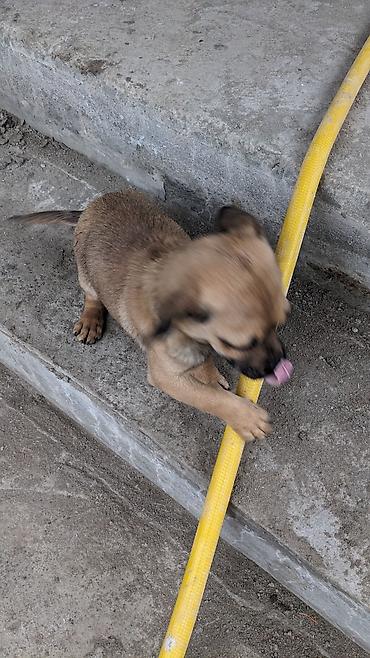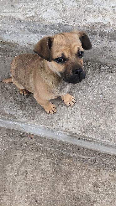 Щенок небольшого размера, короткошёрстный, светло-рыжего окраса с тёмной маской на мордочке. Компактное телосложение, короткие лапы, висячие уши, выразительные тёмные глаза. Игривый и общительный характер: любит внимание, с интересом исследует пространство и охотно играет с предметами (по фото — с шлангом). Подходит для квартиры и частного дома благодаря скромным габаритам и короткой шерсти, не требующей сложного ухода. Отличный компаньон для семьи: ласковый, ориентирован на человека, быстро привыкает к рукам.
