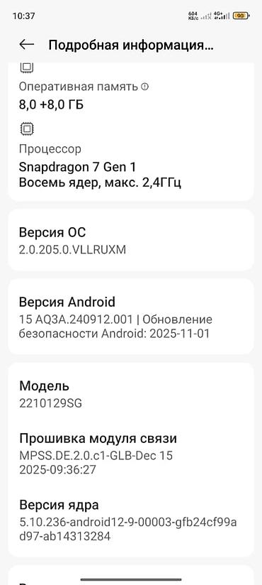 - Версия Android: 15 (сборка AQ3A.240912.001), обновление безопасности Android: 2025-11-01