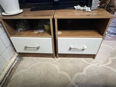 - Две прикроватные тумбы. Каждая с открытой нишей для мелочей и выдвижным ящиком на фасаде белого цвета.