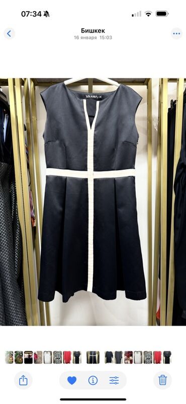3) Темно‑синее платье без рукавов с контрастной отделкой