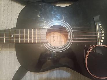 - гитара черного цвета с нейлоновым ремнем