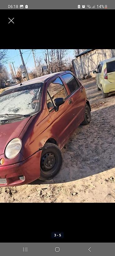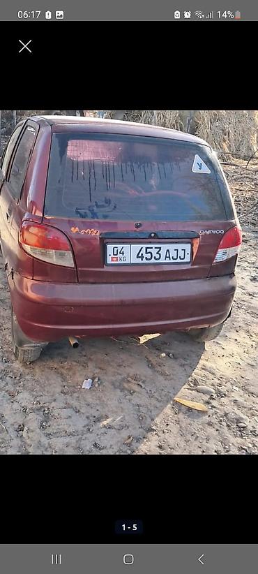 Daewoo Matiz — компактный пятидверный хэтчбек красного или бордового цвета. Автомобиль отличается небольшими габаритами, что делает его удобным для городской езды и парковки. Задняя часть автомобиля имеет характерный дизайн с вертикальными задними фонарями и багажной дверью. На задней части кузова расположены шильдики с названием модели «Matiz» и маркой «Daewoo». Установлен государственный номерной знак. Подходит для повседневного использования и перемещения в условиях плотной городской застройки.