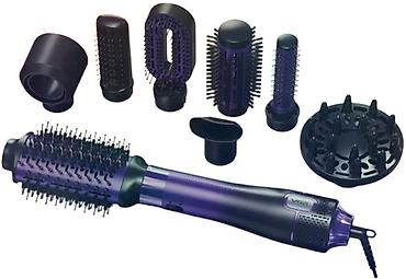 Насадки: 8 сменных головок для различных стилей укладки, включая овальную и круглую щетки, плоскую расческу и диффузор.