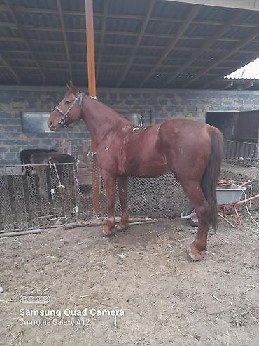 Лошадь гнедой масти под верховую езду. Особенности: - Крепкое телосложение, выраженная мускулатура. - Спокойный характер, реагирует на повод, идет ровным шагом. - Обучена под седло: установлены уз...