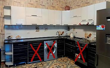 На последнем фото красными крестами отмечены элементы техники/секции, которые не входят в комплект. Продается именно кухонный гарнитур с верхними и нижними шкафами, столешницей, мойкой и смесителем.