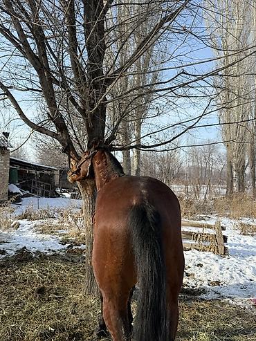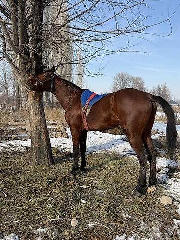 Срочно срочно жашы 3 жаш эркек малга улака универсал басыгы бар женил оозу жумшак Кеми бар ат ысык атада Лошадь под верховую езду - Масть: гнедая, с белой отметиной на морде и белой «чулочной» отм...