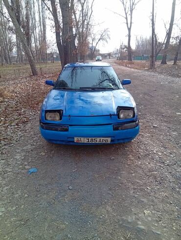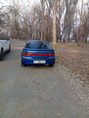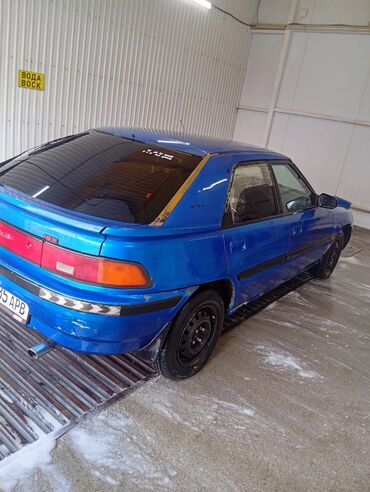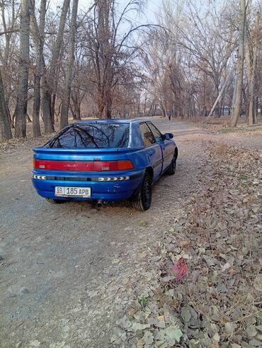 Mazda 323F (ступенчатый хэтчбек/лифтбек, поколение BG) в ярком синем цвете.