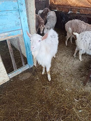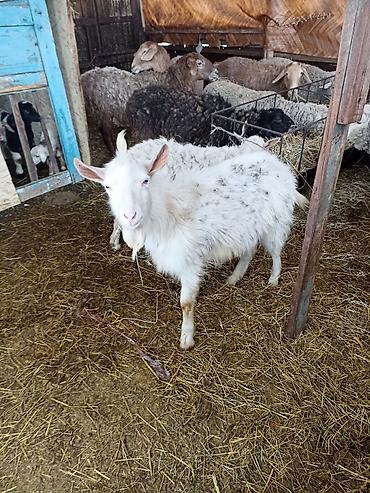 Молодая коза белого окраса с короткими рожками. Содержится в тёплом сарае, на соломенной подстилке, рядом с овцами и козами — привыкла к стаду. Спокойный характер, контактная, подходит для личного хозяйства и разведения. Плотная шерсть с подпалинами, крепкие ноги, ровная спина. Кормление сеном. Отличный вариант для получения молока и молодняка, а также для естественного выпаса и расчистки участка.