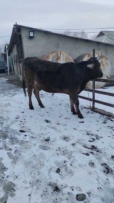 Корова молочного направления. - Масть: темно-коричневая, белые отметины на голове и ушах. - Возраст: визуально молодая, на привязи, спокойная. - Содержание: стойловое, кормление сеном (кормушки-бе...