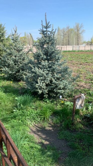 Первые 3 голубые ели, последняя обычная. Первая-4 метра. Другие 2- 170 см. Последняя-230 см. Цена договорная