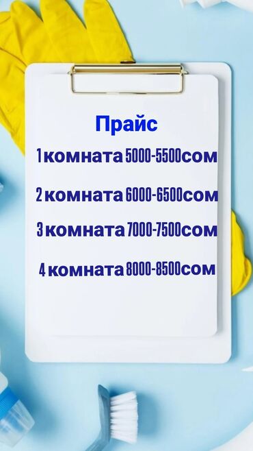 Клининг... Уборка квартиры,,помещение,,кафе,ресторан итд... Со своими оборудованием,,моющие средство...За городом Сокулук городом тоже....