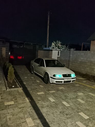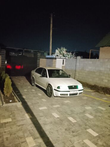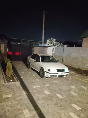 Skoda Octavia (первое поколение), белый седан/лифтбек. Основные особенности: - Кузов: 5‑дверный, белый цвет, тонированные задние стекла. - Колеса: легкосплавные диски. - Оптика: передние и задние ...
