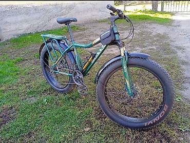 Донгологу ичке велике алмашам Фэтбайк с широкими колесами 26" x 4" для катания по снегу, песку и бездорожью. Легкая стальная/алюминиевая рама хардтейл, передняя амортизационная вилка. Колеса на яр...