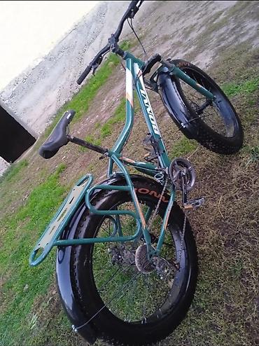 Велосипед горный BONVI (надпись на раме), формат фэтбайк. Основные особенности: - Широкие покрышки повышенной проходимости для бездорожья, песка и снега. - Передняя вилка с амортизацией. - Дисковы...