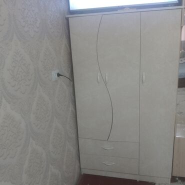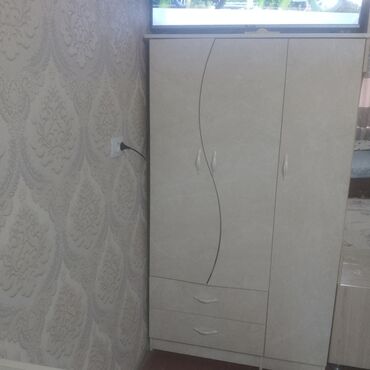 - Отдельно стоящий шкаф с распашными дверцами и двумя вместительными нижними выдвижными ящиками. Дизайн фасадов с волнообразными линиями и одинаковой фурнитурой.
